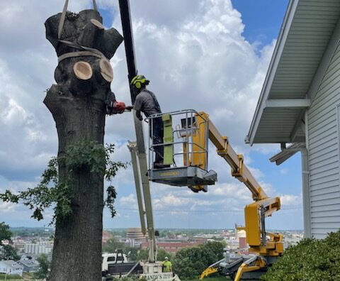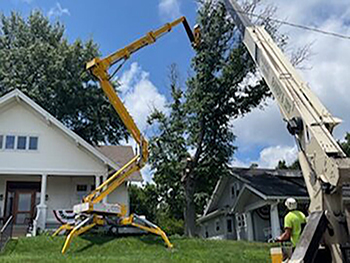 We have the finest equipment available. Being the area’s specialized tree company, we can handle large trees in hard to reach areas, while preserving your yard. We use cranes, bucket trucks, spyder lifts and loaders to safely do your work. Climbing never involves spikes when pruning trees.
